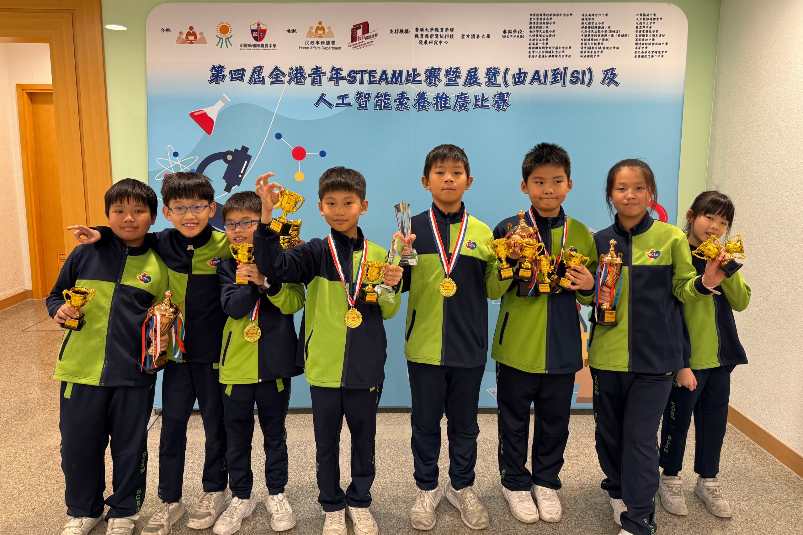 | 陳雅雯、徐紫瑩、陳子隆、張颺、陳雅雯、霍俞銘、陳子隆在「鵬程慈善基金 STEM in PE and Play」分別得到「我最喜愛設計大獎」、「創意大獎」和「最佳演繹獎」。 |